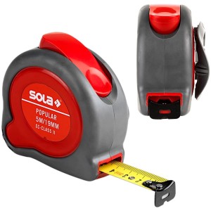 Model SOLA BIG T 5 został wyposażony w solidną, 2-komponentową obudowę z tworzywa, odporną na codzienne użytkowanie i wygodną w trzymaniu. Ergonomiczny kształt oraz antypoślizgowa powierzchnia poprawiają komfort pracy, a 2-częściowy hamulec taśmy ułatwia wykonywanie dokładnych pomiarów.