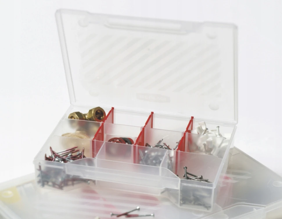 organizer na drobiazgi, pojemnik na śrubki, curver keter organizer, organizer transparentny, pojemnik z przegródkami, organizer warsztatowy, pojemnik na małe elementy, organizer do garażu, organizer L