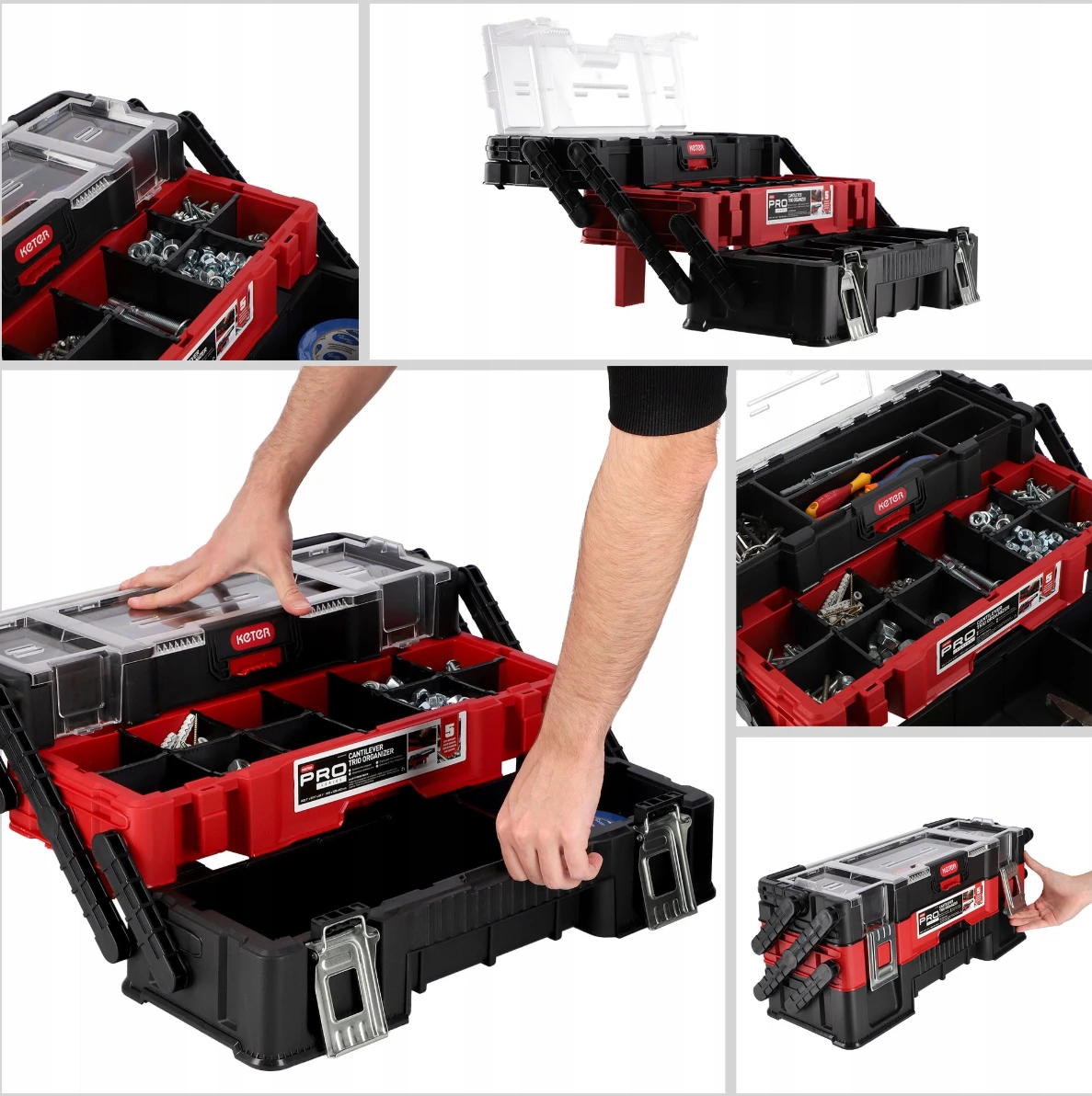 - Trzy poziomy przechowywania – ułatwiają wygodne segregowanie akcesoriów i narzędzi.