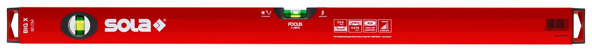 Model SOLA BIG X 40 został wykonany z aluminiowego profilu skrzynkowego typu X o wymiarach 52 × 25 mm. Powlekana powierzchnia w czerwonym kolorze zwiększa trwałość narzędzia i nadaje mu wyrazisty, profesjonalny wygląd. Kompaktowa długość 40 cm sprawia, że poziomica doskonale nadaje się do prac montażowych, instalacyjnych i remontowych.