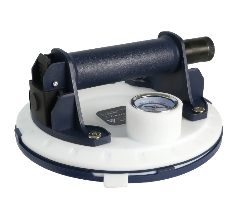 Przyssawka została wyposażona w pompkę elektryczną z akumulatorem oraz analogowy manometr, który ułatwia kontrolę podciśnienia podczas pracy. W zestawie znajduje się także walizka transportowa, ładowarka, zestaw naprawczy, kluczyk do wymiany filtra i dwa filtry przeciwpyłowe, dzięki czemu narzędzie jest gotowe do użycia od razu po zakupie.