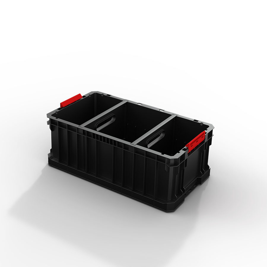 Pojemny, modułowy box narzędziowy stworzony do wygodnego transportu elektronarzędzi, narzędzi ręcznych, materiałów budowlanych i różnego rodzaju wyposażenia roboczego.