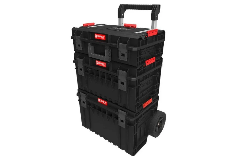 Mobilny zestaw modułowych skrzyń narzędziowych, stworzony do wygodnego transportu narzędzi, akcesoriów i wyposażenia roboczego w warsztacie, serwisie i podczas pracy w terenie.