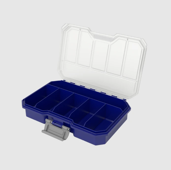 Funkcjonalny organizer średniego formatu do przechowywania drobnych elementów montażowych, akcesoriów warsztatowych i podręcznych części. To wygodne rozwiązanie dla osób, które chcą zachować porządek i mieć zawartość dobrze uporządkowaną.
