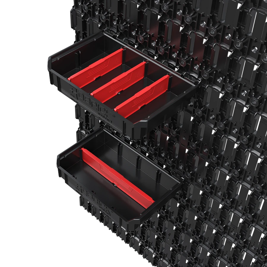 Praktyczny zestaw do uporządkowanego przechowywania narzędzi, akcesoriów i drobnych elementów w warsztacie.