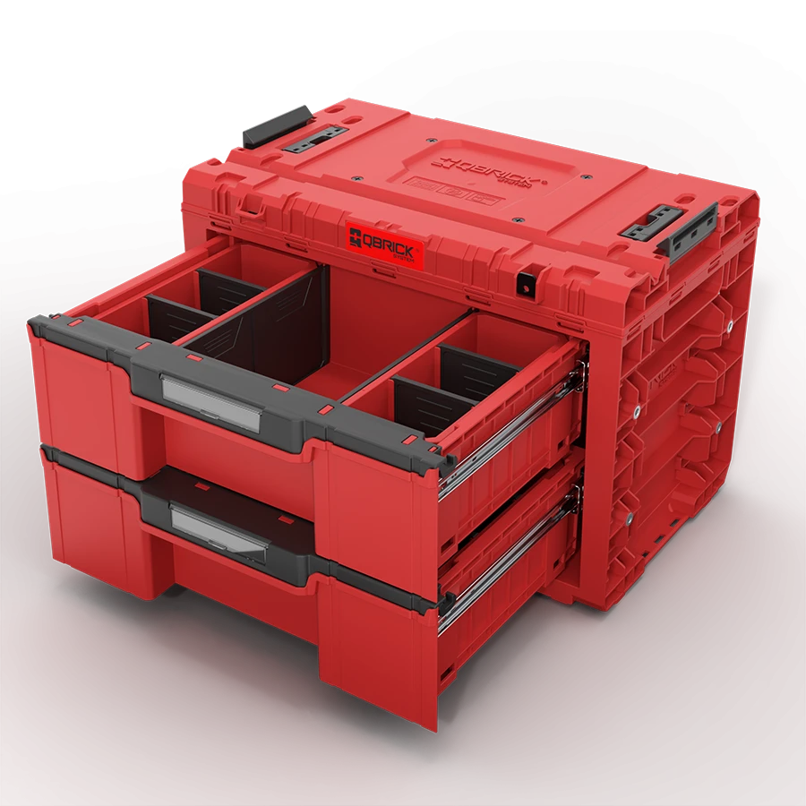 qbrick system prime drawer 2 toolbox expert red ultra hd, skrzynia szufladowa qbrick, moduł szufladowy qbrick, skrzynia na narzędzia z szufladami, qbrick prime drawer 2 expert, organizer warsztatowy qbrick, skrzynia red ultra hd, skrzynia ip66, skrzynia modułowa prime, profesjonalna skrzynia qbrick