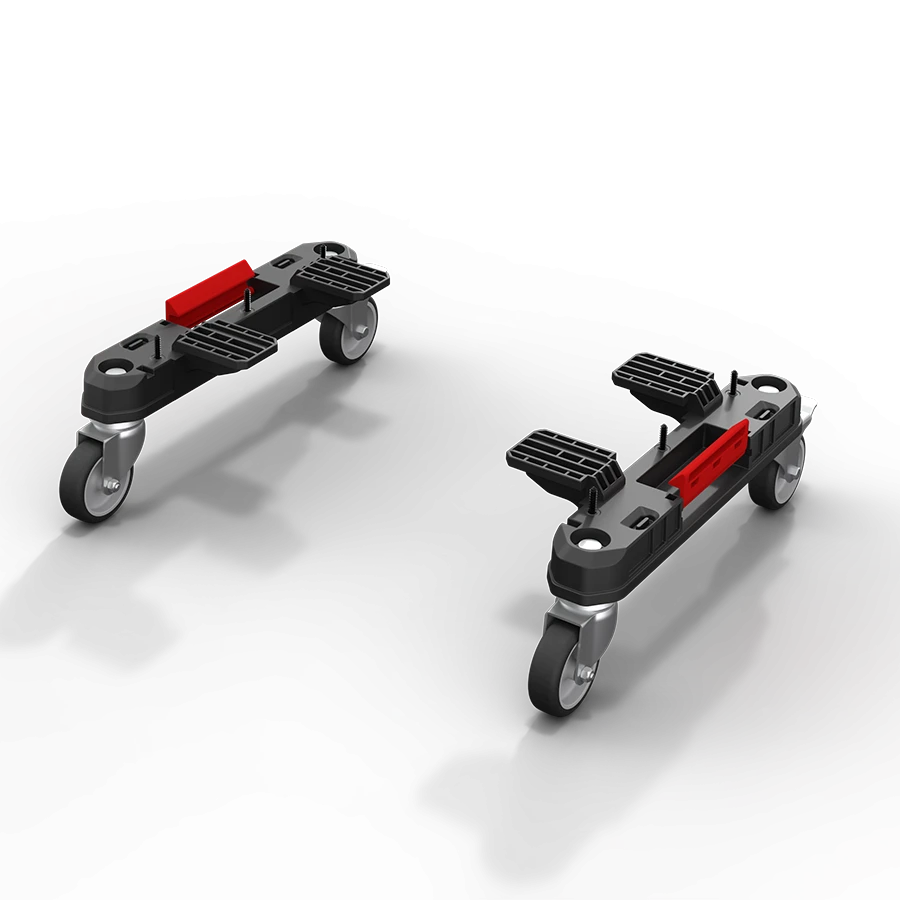Adapter jezdny do modułów szufladowych Qbrick System PRIME, który zwiększa mobilność zestawu i ułatwia przemieszczanie cięższych skrzyń w warsztacie oraz podczas pracy terenowej.