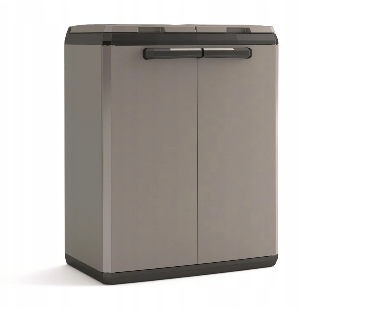 Praktyczna szafka do segregacji odpadów, zaprojektowana z myślą o wygodnym przechowywaniu worków na śmieci i utrzymaniu porządku wokół domu, na tarasie, balkonie lub w strefie gospodarczej.