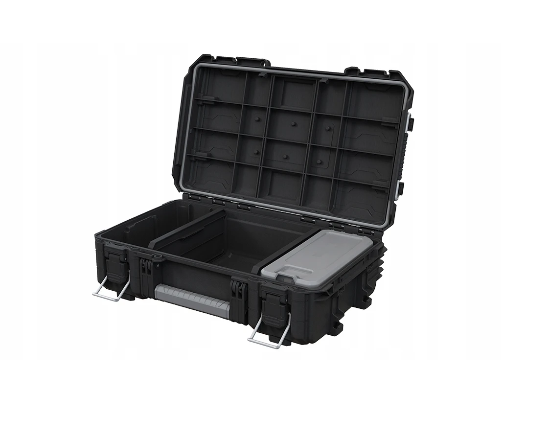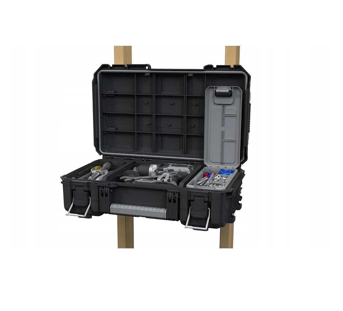 Wytrzymała walizka narzędziowa do bezpiecznego przechowywania i wygodnego transportu narzędzi oraz akcesoriów.